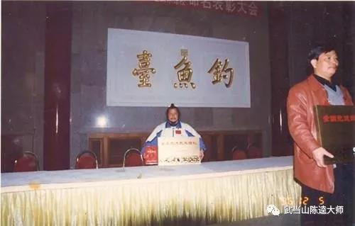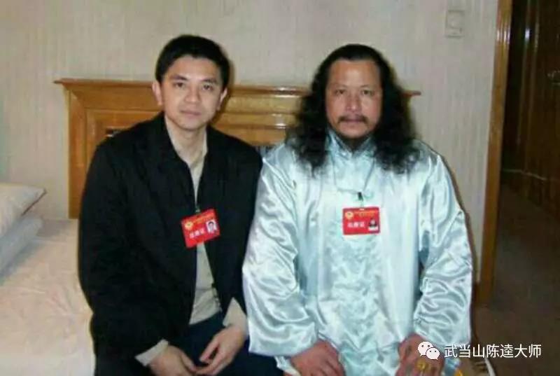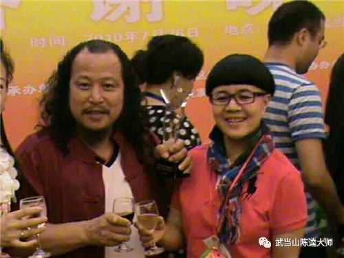 武当武术研究总会会长陈逵大师与中央电视台节目主持人金龟子庆祝弟子获全国金奖