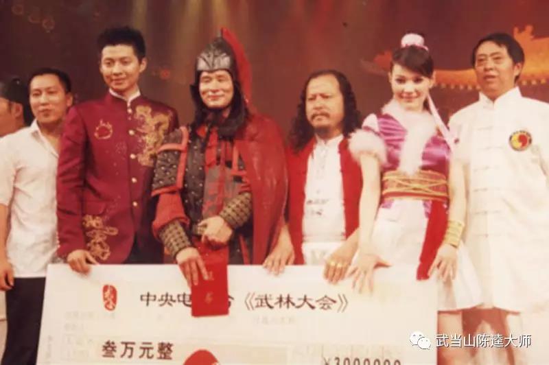 中央电视台武林大会年度总冠军领奖(陈逵大师与弟子、中央电视台节目主持人合影)